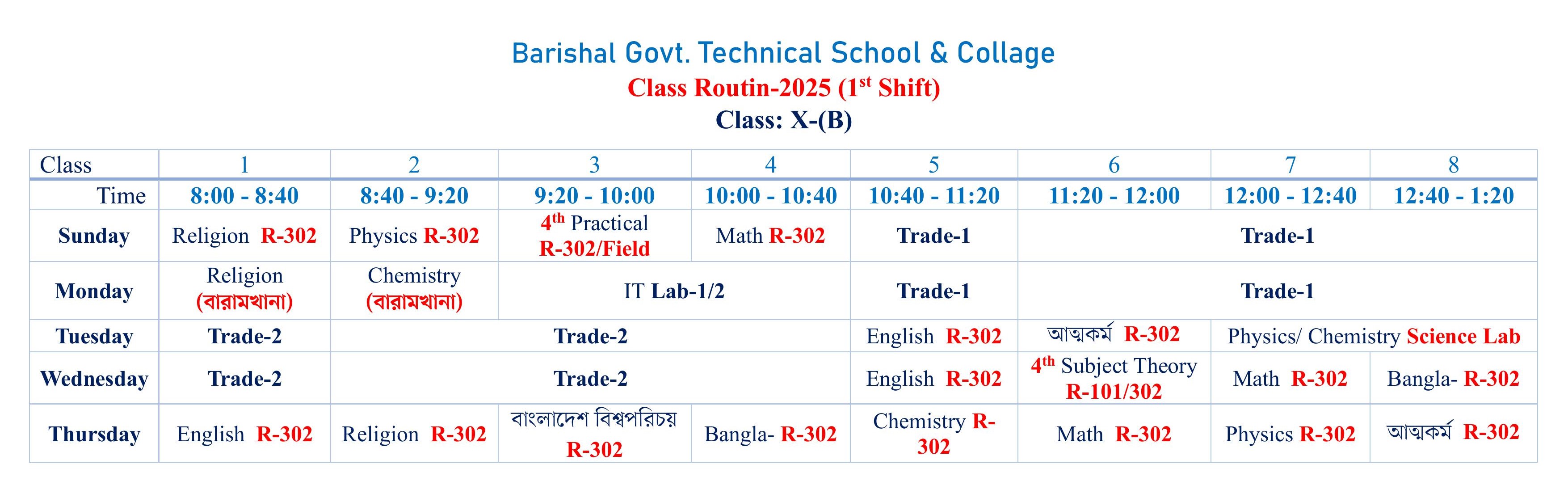 New Class Routine (X)-B (2025) [সংষোধিত]